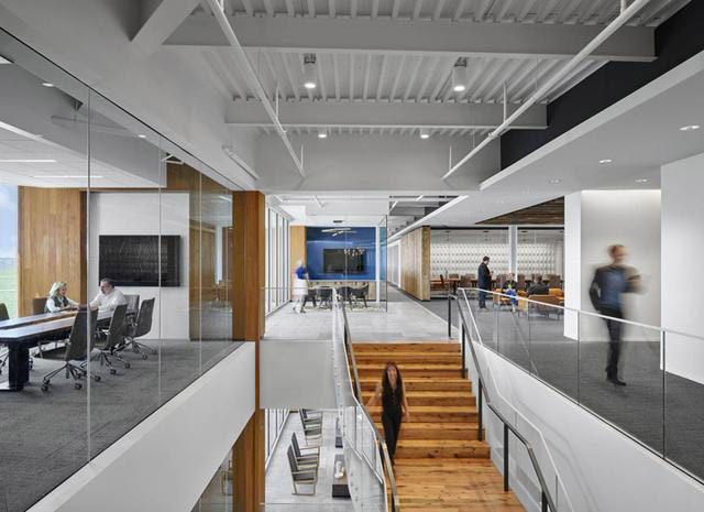 | 本案是其位于堪薩斯城總部辦公室的設計及辦公家具應用案例,由HOK設計團隊負責室內設計。一樓的外立面覆蓋了加拉帕木雨幕墻,這里主要用于舉辦各種慶祝活動。二樓和三樓用于辦公,整個外墻采用通透的玻璃幕墻,傳遞開放透明致力全球開拓的雄心。 |